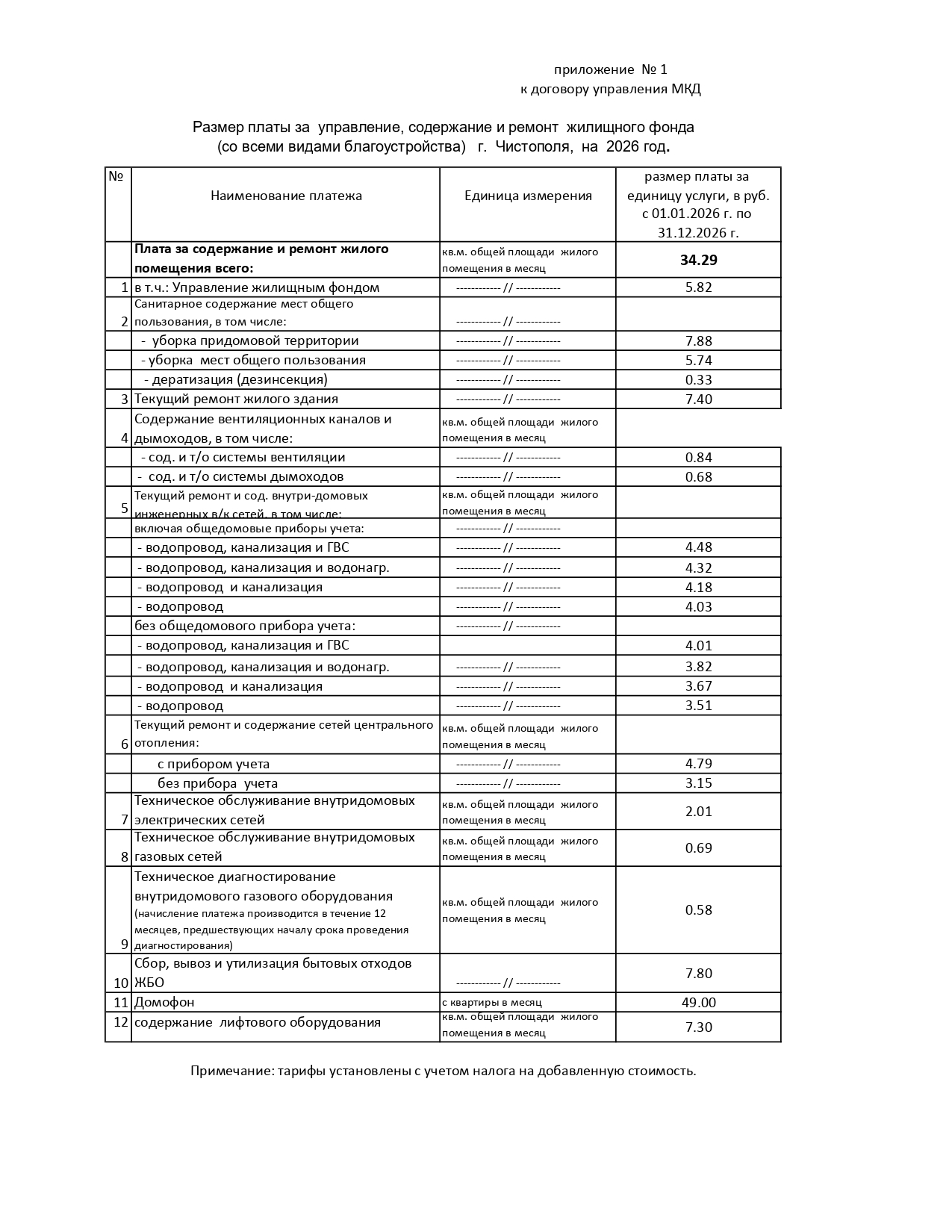 Услуги и тарифы ООО УК «Дом Медиков» |